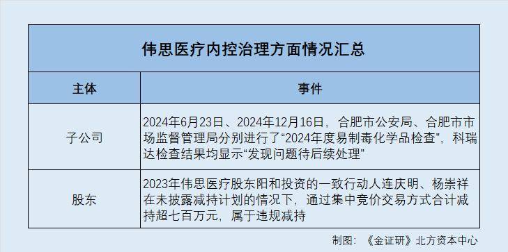 3.1 2024年6月及12月,伟思医疗子公司“易制毒化学品检查”被发现问题待后续处理