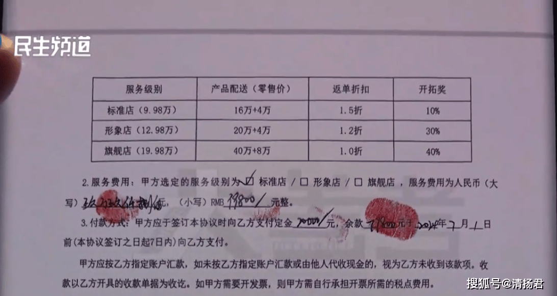 她们发现,这伙人“每场活动换家公司”,会务人员、托都是同一批人,套路始终如一:用“保底业绩”画饼,签下含“未达标按比例退款”条款的合同,下店拓客时靠低价引流消耗加盟商成本,最终以“协商退款”拖延或拒不履行。比如杜女士交的9.9万元,只能退2万元,还要分期到12个月。而马女士的交的20万元,退款只能退3万元。