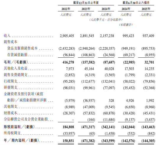 招股书显示,2022年、2023年、2024年及2025年上半年(下称“报告期”),金晟新能源实现收入分别约为29.05亿元、28.92亿元、21.57亿元、9.37亿元,收入逐年下滑,今年上半年同比减少5.83%;同期,实现净利润分别约为1.51亿元、-4.71亿元、-3.44亿元、-1.44亿元,最近两年半亏损9.59亿元,报告期内累计亏损8.08亿元。