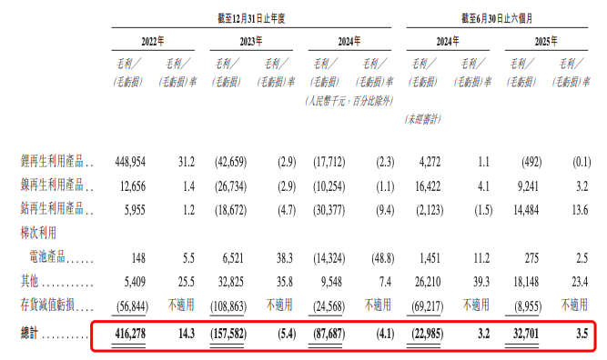报告期内,公司毛利率波动较大。2022年毛利率为14.3%,2023年则骤降至-5.4%,2024年为-4.1%,而2025年上半年又回升至3.5%。这主要源于核心原材料碳酸锂价格的暴跌。