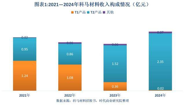 报告期内,科马材料的T1产品陷入停产,收入占比一度接近“归零”。