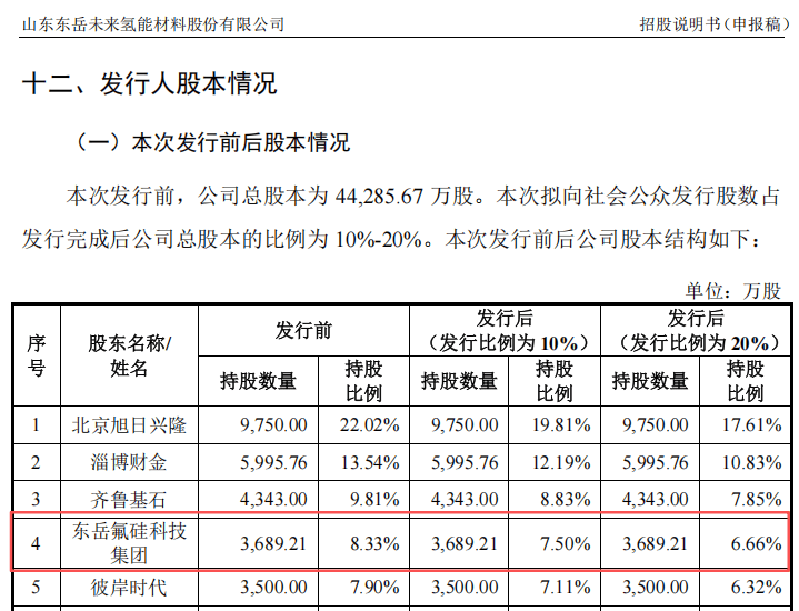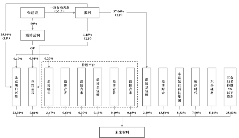 东岳未来氢能股权结构分散,无控股股东,实际控制人认定为东岳集团创始人张建宏。