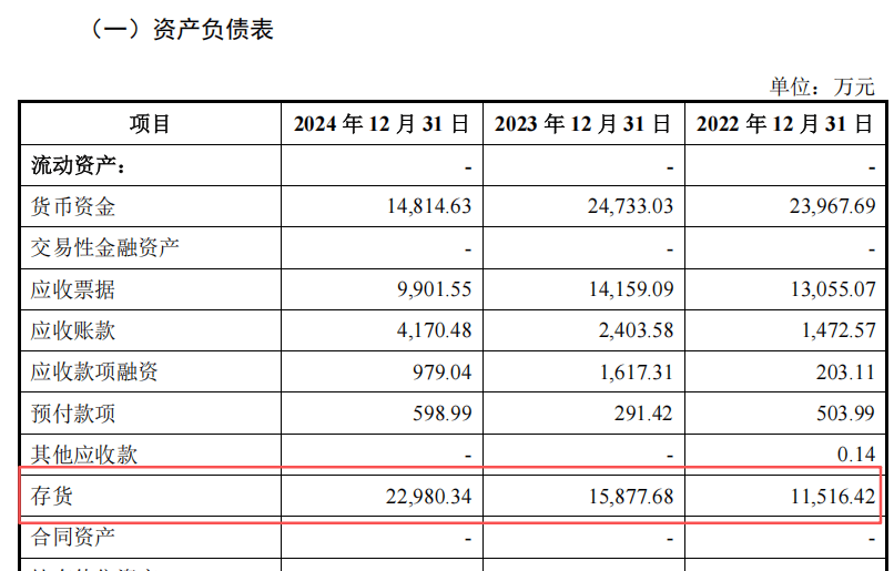根据招股书披露,公司2024年末存货余额较2022年末激增113.6%,远超同期营业收入22.1%的增幅。这种存货的异常高速增长与营运效率下降的背离现象,可能暗示公司存在存货积压或销售不畅的问题。