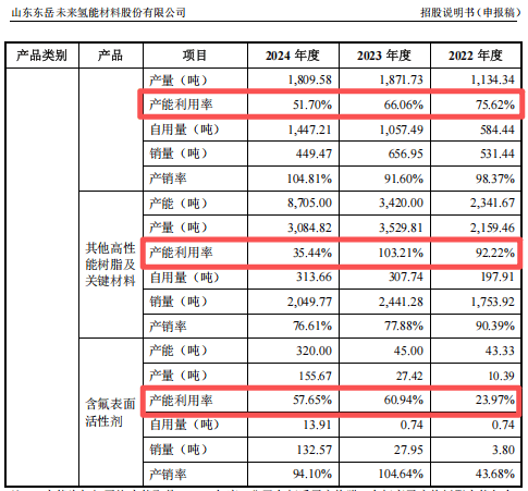 即使公司通过审核,如何解决产能利用率不足仍计划大幅扩产的矛盾,将是投资者关注的焦点。截至2024年末,公司主要产品产能利用率普遍在50%以下,却计划通过IPO募集资金将产能扩大数倍。
