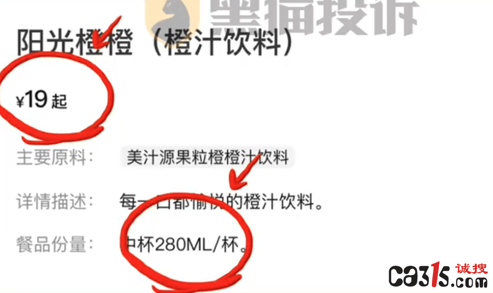 据网友描述,市面上一瓶450ml的果粒橙售价仅为3元左右,而必胜客提供的同款橙汁只有280ml却售价19元,并且在菜单上标注着"含纯正果汁"、"含真实果肉"等宣传语。经过简单计算可知,这杯橙汁的价格相比原材料成本翻了6倍多。