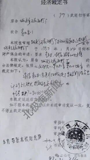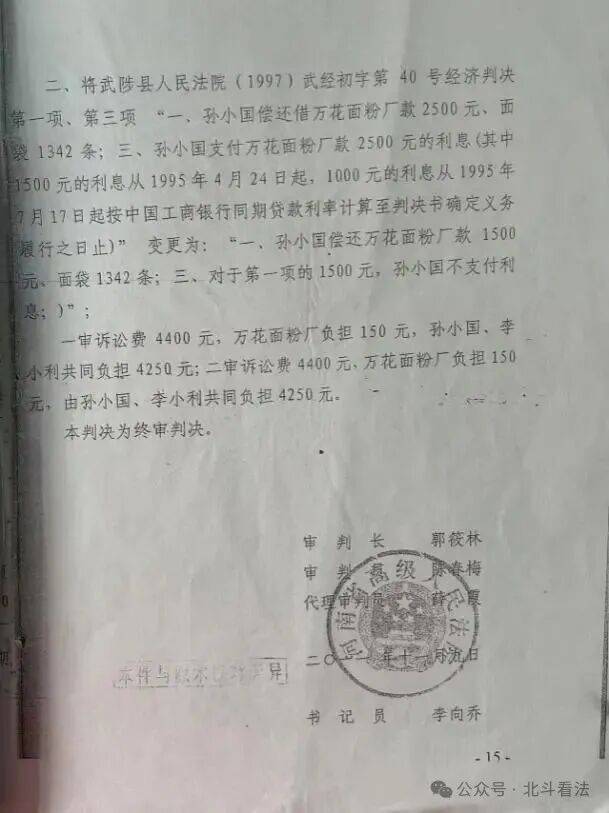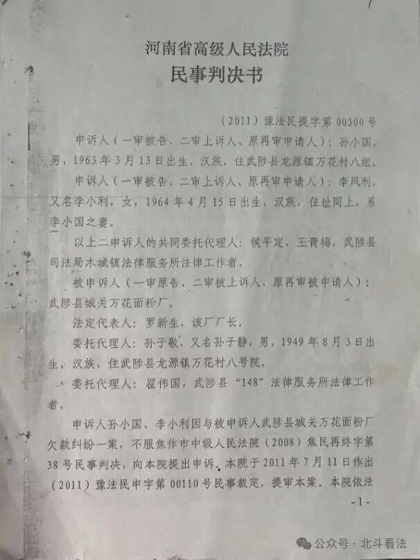 1995年孙小国、李小利夫妻和孙某静合伙做面粉生意,孙某静曾是河南省焦作市武陟县城关万花面粉厂法定代表人。1997年两方终止合作,同时也产生了财务纠纷。1997年,孙某静将孙小国、李小利夫妇诉至武陟县人民法院。同年武陟县人民法院作出第40号判决,判定孙小国夫妇需付给原告孙某静87600元欠款及35000元利息,总共是12.26万元。