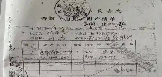 (图为法院执行时扣押手机和自行车的清单)(图为孙某静从法院领到执行款的收条)