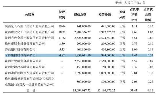 另据财报显示:报告期末,长安银行前十名股东及其关联企业贷款余额合计84.03亿元,贷款形态均为正常,其中东岭集团关联企业贷款余额17.91亿元,占比超20%。