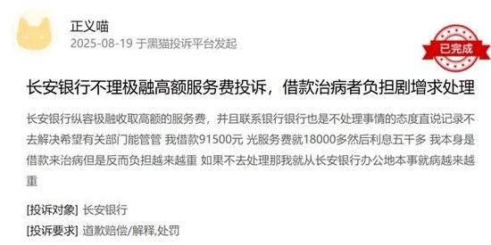 8月19日,一位借款治病的消费者表示,长安银行纵容极融收取高额的服务费,联系银行也是不处理事情的态度,只说记录不去解决。我借款91500元,光服务费就18000多,利息五千多,我本身是借款来治病但是反而负担越来越重。