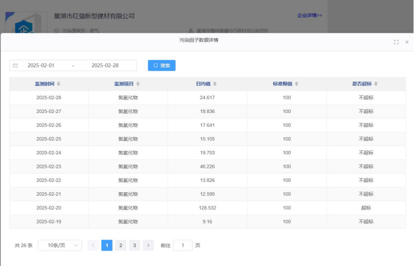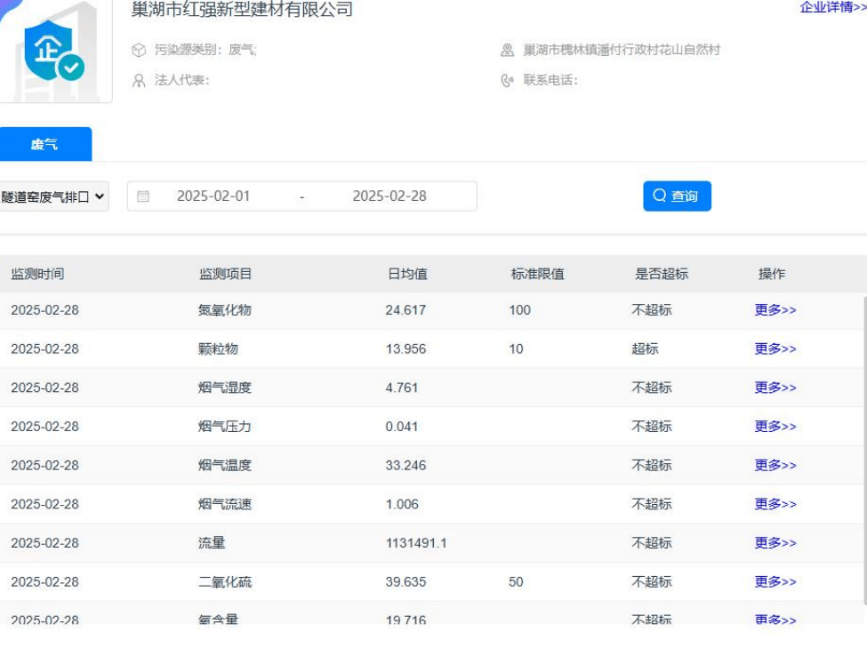 依据安徽省污染源自动监控信息平台的数据显示,红强建材超标情况如下: