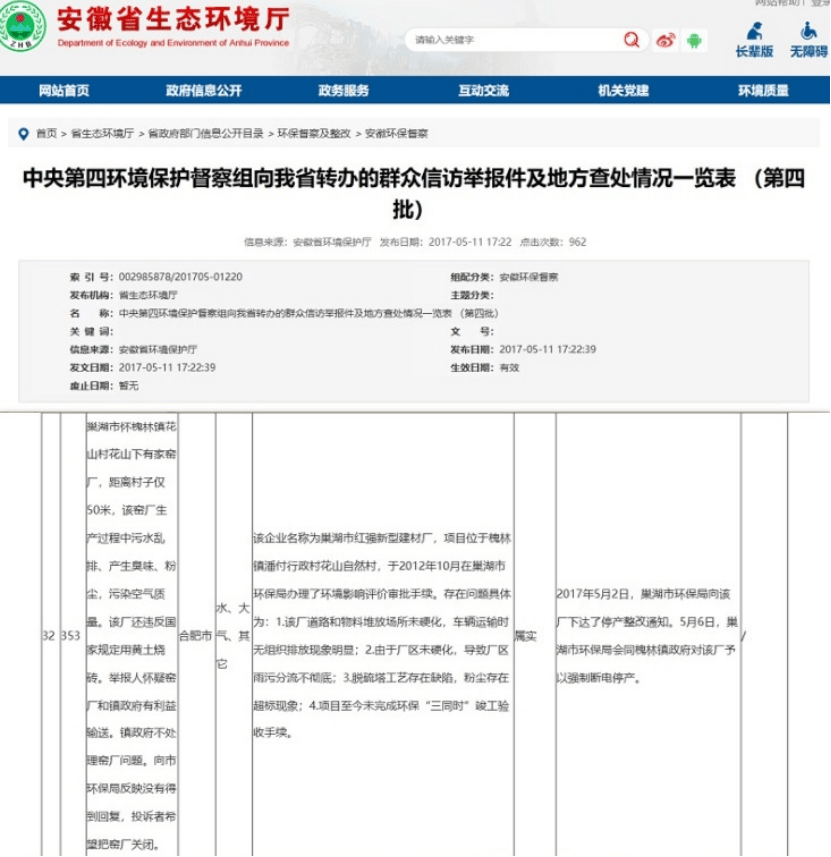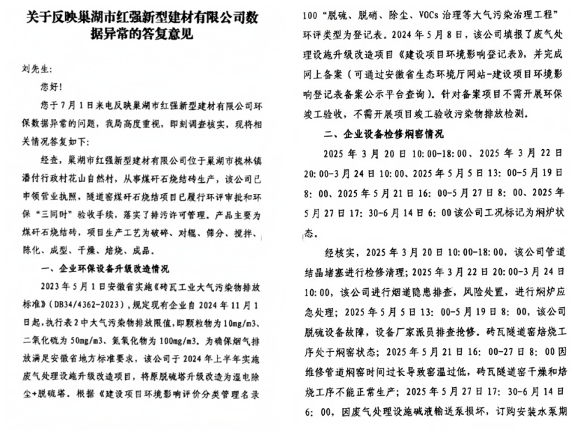 近日,巢湖市红强新型建材有限公司(以下简称:红强建材)因长期频繁超标排放污染物引发社会广泛关注。