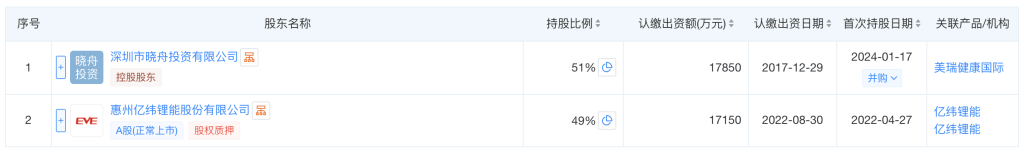 澎湃新闻记者查阅发现,兴华锂盐目前由深圳市晓舟投资有限公司(下称“晓舟投资”)和亿纬锂能分别持有51%和49%股权。而就在1个月前,亿纬锂能正式披露转让其全部股权。