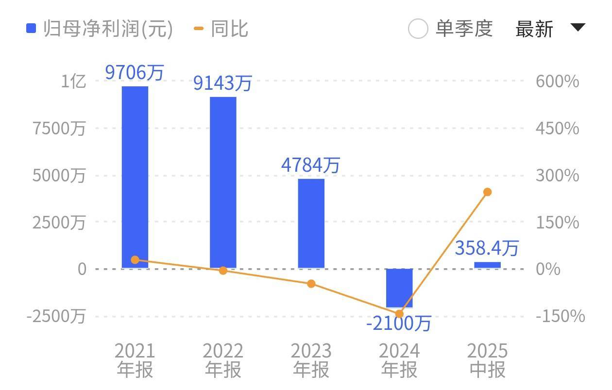根据更正后的财务数据,公司2022年即上市首年实现营业收入2.33亿元,对应归母净利润9143万元。但在随后的两年里,公司业绩急转直下,2023年和2024年分别实现营业收入2.01亿元、1.44亿元,分别同比下降13.75%、28.40%,对应归母净利润则分别下滑47.68%、143.90%。