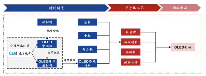 九目化学主要从事OLED前端材料的研发、生产和销售,主要产品包括OLED升华前材料、OLED中间体等功能性材料,下游客户包括三星SDI、杜邦集团、LG化学、德山集团等企业。
