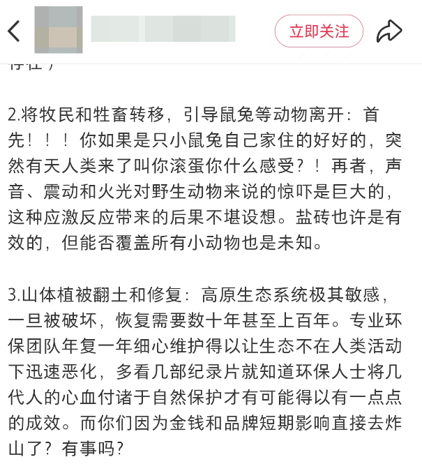 更有部分消费者直言,作为主打“户外”“自然保护”的知名品牌,始祖鸟选择在生态敏感区办烟花秀,显得“傲慢且矛盾”,与它所宣扬的自然保护初衷背道而驰。