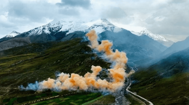 从创作呈现来看,9月19日傍晚,艺术家蔡国强在西藏喜马拉雅山脉查琼岗日开启艺术项目“升龙”,让火焰沿着山脊引爆,形成“升龙”景观,展现艺术家对天地、宇宙的追问,也以此呼应在地文化中龙象征的寓意,及喜马拉雅深处世代相承的“生生不息”的向上精神。