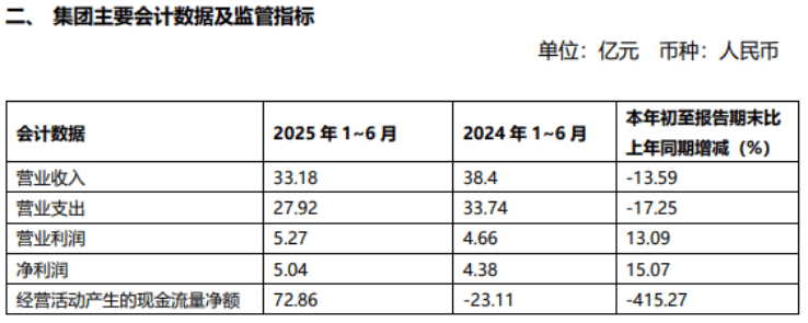 数据显示,上半年营业利润5.27亿元,同比增长13.09%;净利润5.04亿元,同比增长15.07%。