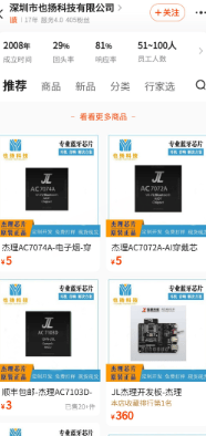 其中,也扬科技则在其线上店铺中直接销售多款杰理科技的蓝牙耳机芯片。该店铺客服表示,芯片可单独销售,消费者可直接下单购买。这一情况也与杰理科技所称的方案商等客户均会对芯片进行二次开发的说法存在差异。
