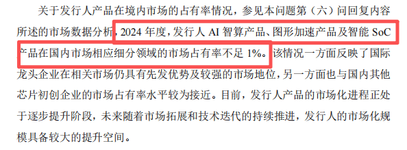 其次,公司2024年AI智算产品、图形加速产品及智能SoC产品在国内市场相应细分领域的市场占有率不足1%。在市场份额如此低的情况下,如何确保获得20亿元的大额订单?