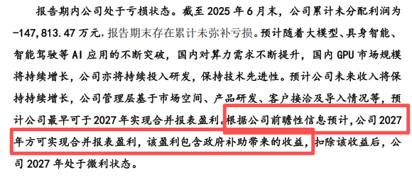 摩尔线程管理层预计,公司最早于2027年实现合并报表盈利。但这盈利预测存在两个关键问题。