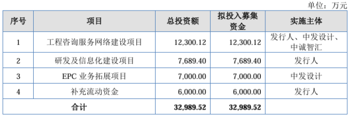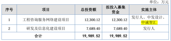 此次IPO,中诚咨询拟募资2亿元,1.23亿元用于工程咨询服务网络建设项目,7689.4万元用于研发及信息化建设项目,实施主体为中诚咨询及其子公司中发设计、中诚智汇。