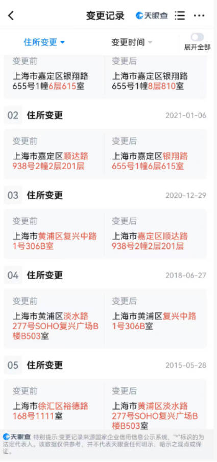 注册地址就更为变动频繁了,2015年以来,利多星智投的注册地址就换了5次,从徐汇区裕德路168号换到黄浦区淡水路的复兴广场B座,再搬到黄浦区复兴中路1号,2020年后,再搬到嘉定区顺达路938号、嘉定区银翔路655号1幢6层,2024年再搬到8层。