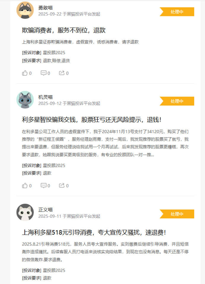 除了监管部门的处罚,利多星投顾还面临着众多消费者的维权诉求。