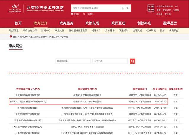北京经开区“6·3”亡人事故调查报告。 北京经开区官网/图