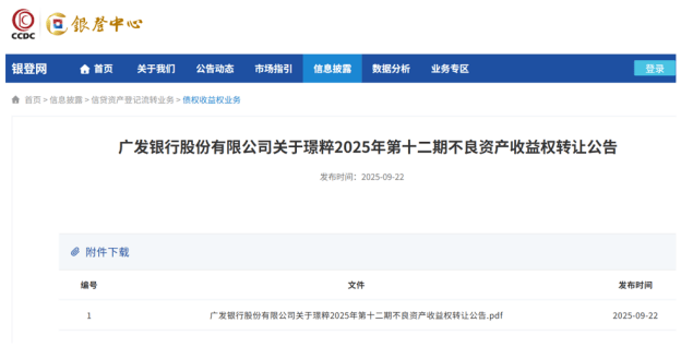图:广发银行在银登中心挂出的公告