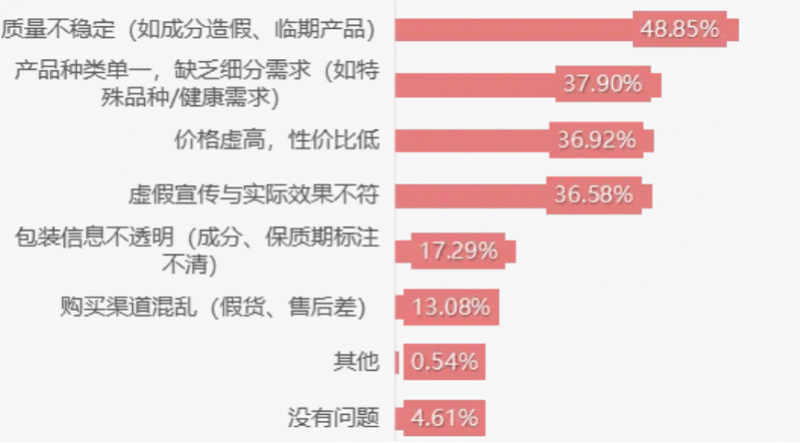 根据近期江苏省消保委开展的专项调查结果,有近半消费者认为核心痛点是质量不稳定;仅有不足三成的宠物食用食品后未出现任何异常。江苏省消保委指出,宠物消费市场存在显著问题,尤其在宠物食品与用品领域,呈现出“高需求、低信任”的矛盾。