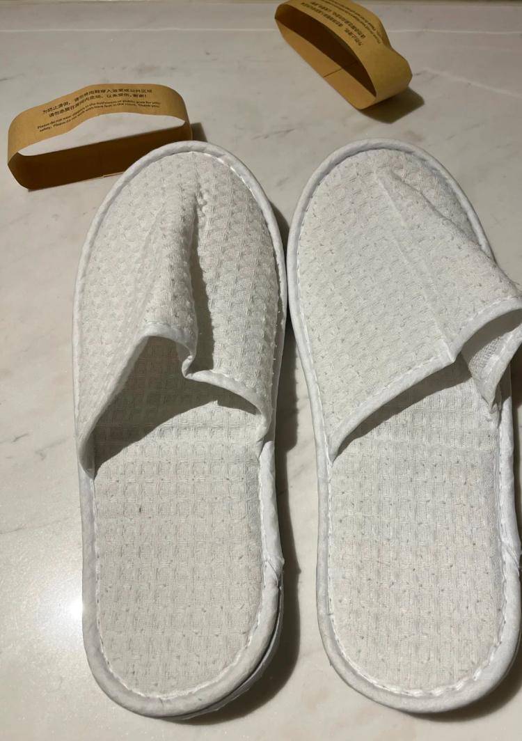值得注意的是,该酒店提供的拖鞋外包装纸带上,仅标注 “为防滑到,请勿将拖鞋穿入浴室或者公共区域”“请勿赤脚在房间内走动,以免受伤” 等提示,未提及 “拖鞋可循环使用” 相关信息,酒店负责人也坦言 “未提前向消费者告知循环使用规则”。
