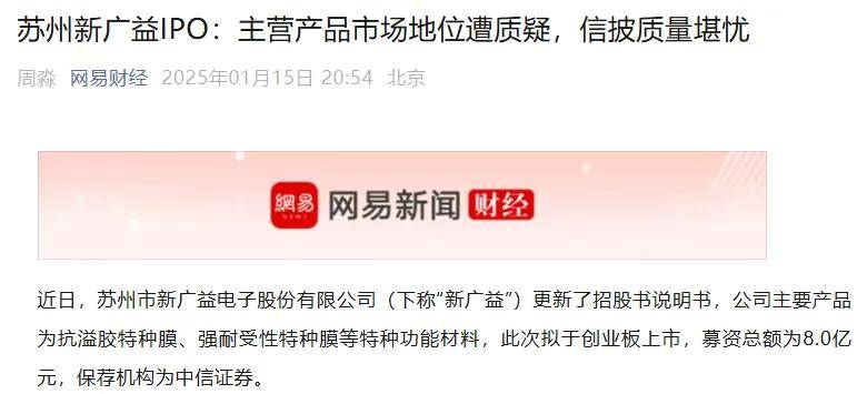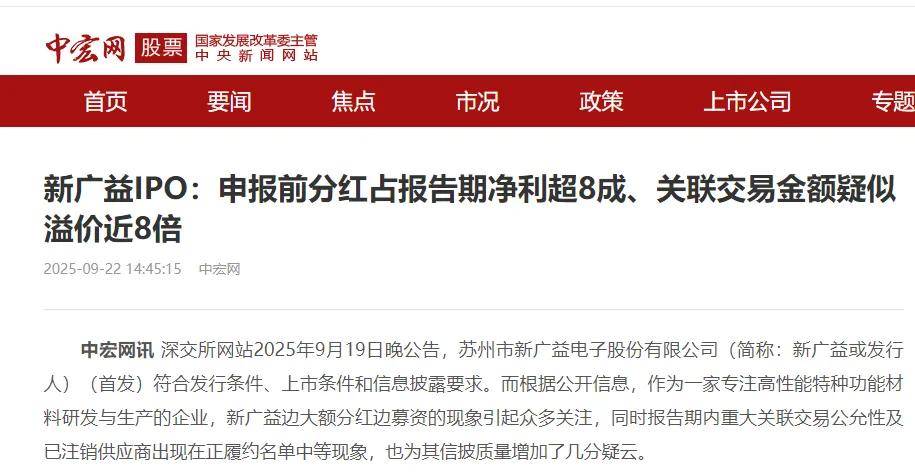 深交所官网显示,2025年9月19日,苏州市新广益电子股份有限公司(简称:新广益)创业板IPO过会。