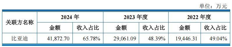 对单一客户比亚迪重大依赖及关联交易占比较高