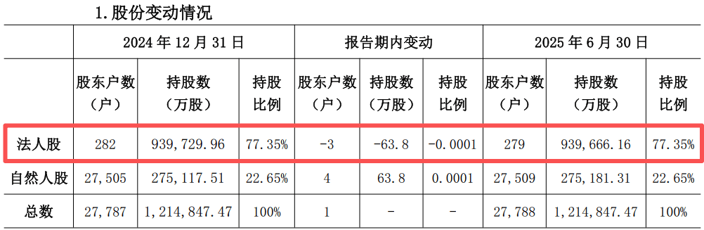 「子弹财经」发现,北京农商行的股东构成较为分散。截至2025年6月末,该行股东总数为27788户,其中法人股东279户,持股比例77.35%;自然人股东27509户,持股比例22.65%。