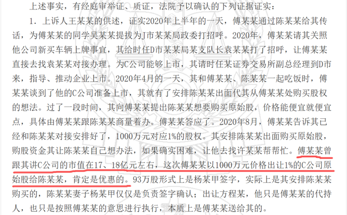根据法院文件,2020年6月的某一天,在商谈购股事项时,傅志伟告诉王巧全和陈某某,影速集成估值17、18亿元左右。