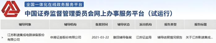2021年3月22日,影速集成再次在江苏证监局进行上市辅导备案登记。