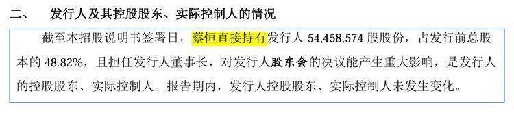 招股书显示,截至招股说明书签署日,蔡恒直接持有南特科技54,458,574股股份,占发行前总股本的48.82%,且担任公司董事长,对公司股东会的决议能产生重大影响,是公司的控股股东、实际控制人。