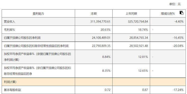 世纪数码在新三板发布的半年报显示,今年上半年,公司实现营业收入3.11亿元,同比下降4.40%;归属于挂牌公司股东的净利润2410.85万元,同比下降16.45%。