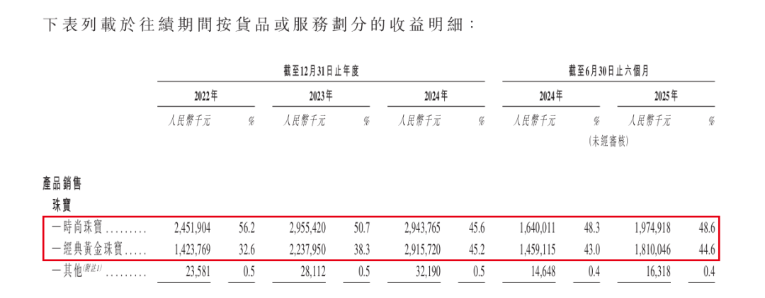 2025年上半年,潮宏基的经典黄金珠宝收入达到18.1亿元,同比增长24%,收入占比达到44.6%,和时尚珠宝的48.6%接近。