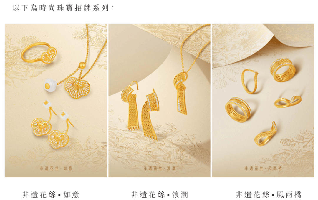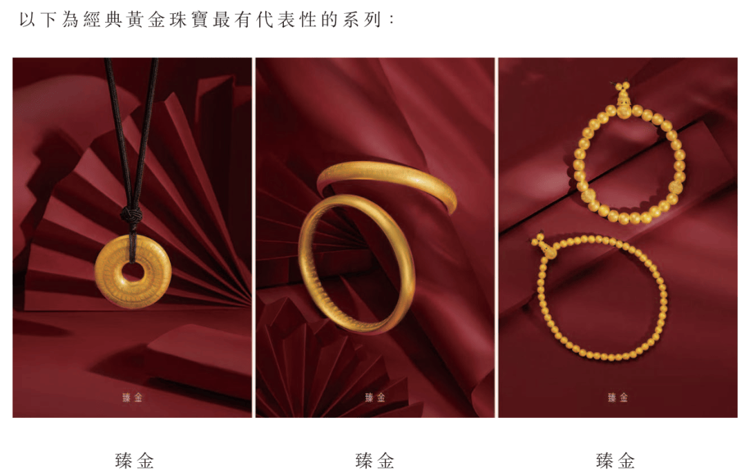 除此之外,公司还有经典黄金珠宝,定价主要参考克重和手工费。其中,具有代表性的是「臻金」系列。