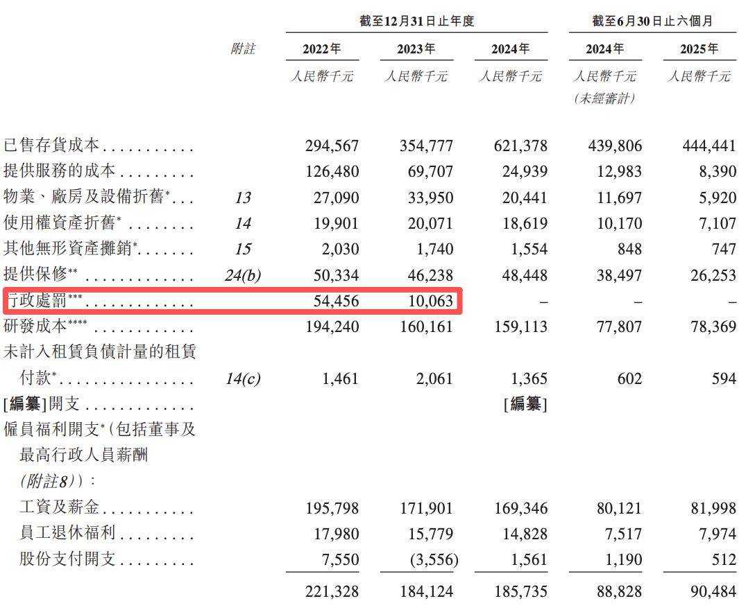 贝多商业发现,极飞科技曾多次被处罚,其中2022年、2023年分别被罚款5445.6万元、1006.3万元。据招股书披露,于2023年8月,极飞科技就有关若干出口的非重大事件被处以行政处罚,该处罚已于2024年6月全部结清(「行政处罚」)。