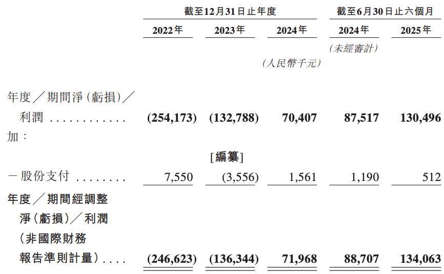 不难发现,极飞科技的业绩持续处于增长状态,且于2024年实现扭亏为盈。按非国际财务报告准则计量,该公司2022年、2023年、2024年度和2025年上半年的经调整净利润分别约为-2.47亿元、-1.36亿元、7196.8万元和1.34亿元。