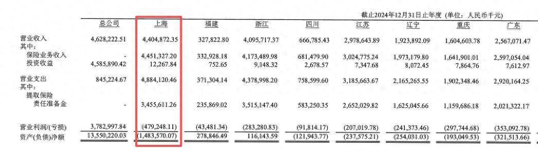 值得一提的是,2024年,上海分部实现营业收入44.04亿元,营业亏损4.79亿元。