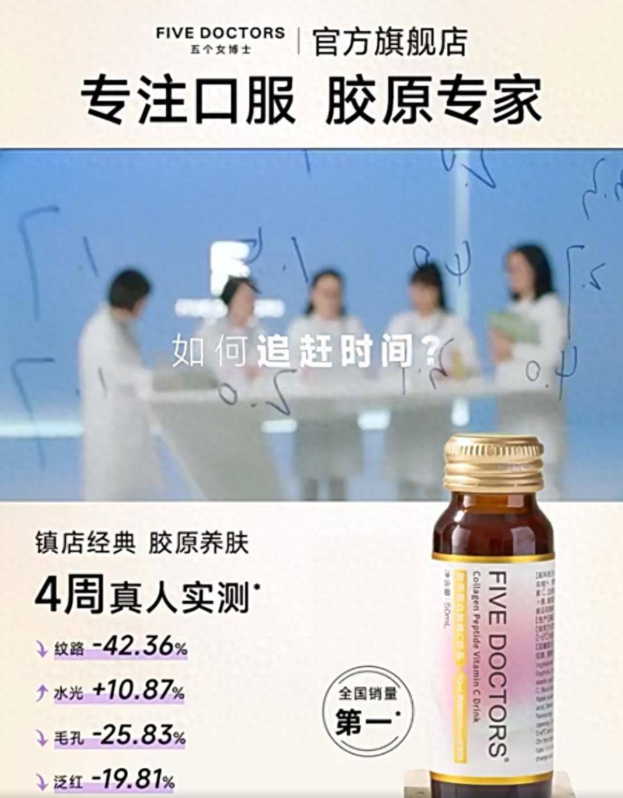 很明显,“五个女博士”这款只拥有食品生产许可证的食品饮料类型的胶原蛋白肽,在宣传过程中“出格”了。