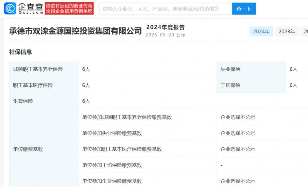 据企查查信息显示,金源国控集团2024年社保在缴员工为6人,企业资产及营收信息均选择不公示。