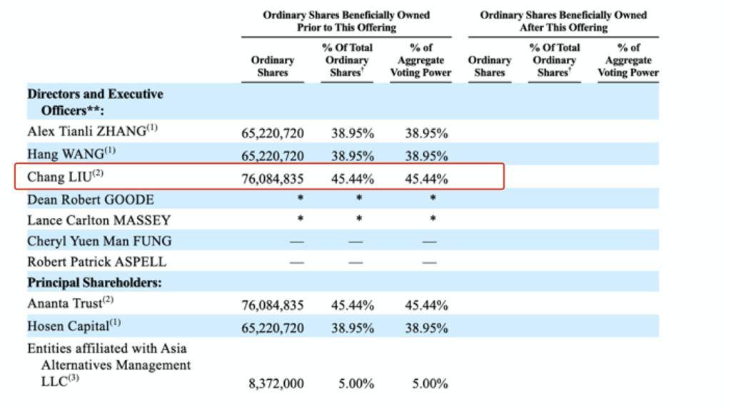 来源:KGF招股书,显示刘畅(新希望六和董事长、新希望创始人刘永好之女)代表Ananta信托,任董事。