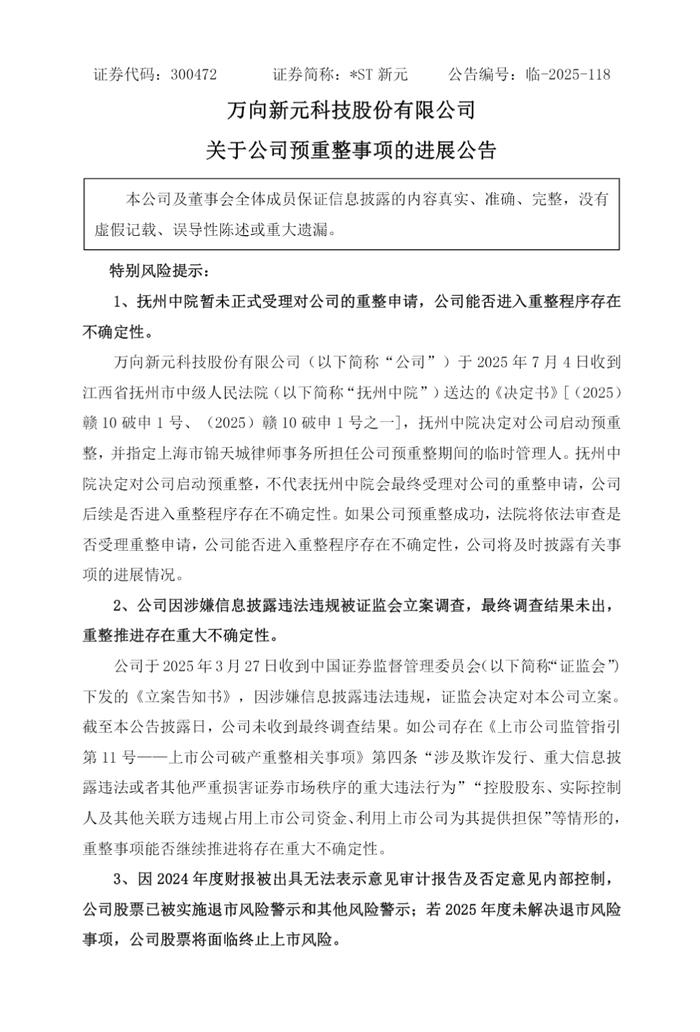近日,万向新元科技股份有限公司(*ST新元,300472.SZ)因子公司贷款相关的重大诉讼事项引发外界关注。
