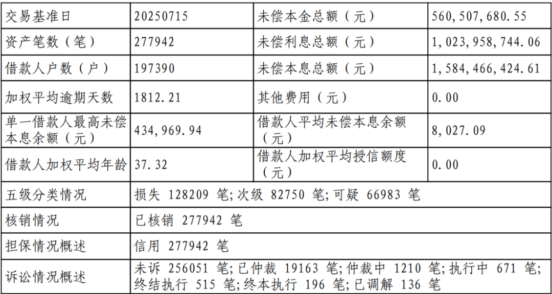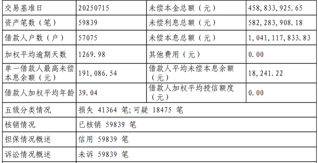 公告显示,第6期不良贷款的本息总额为15.84亿元,加权平均逾期天数1812.21天,将近逾期5年,加权平均年龄为37.32,平均未偿本息余额8027.09元;