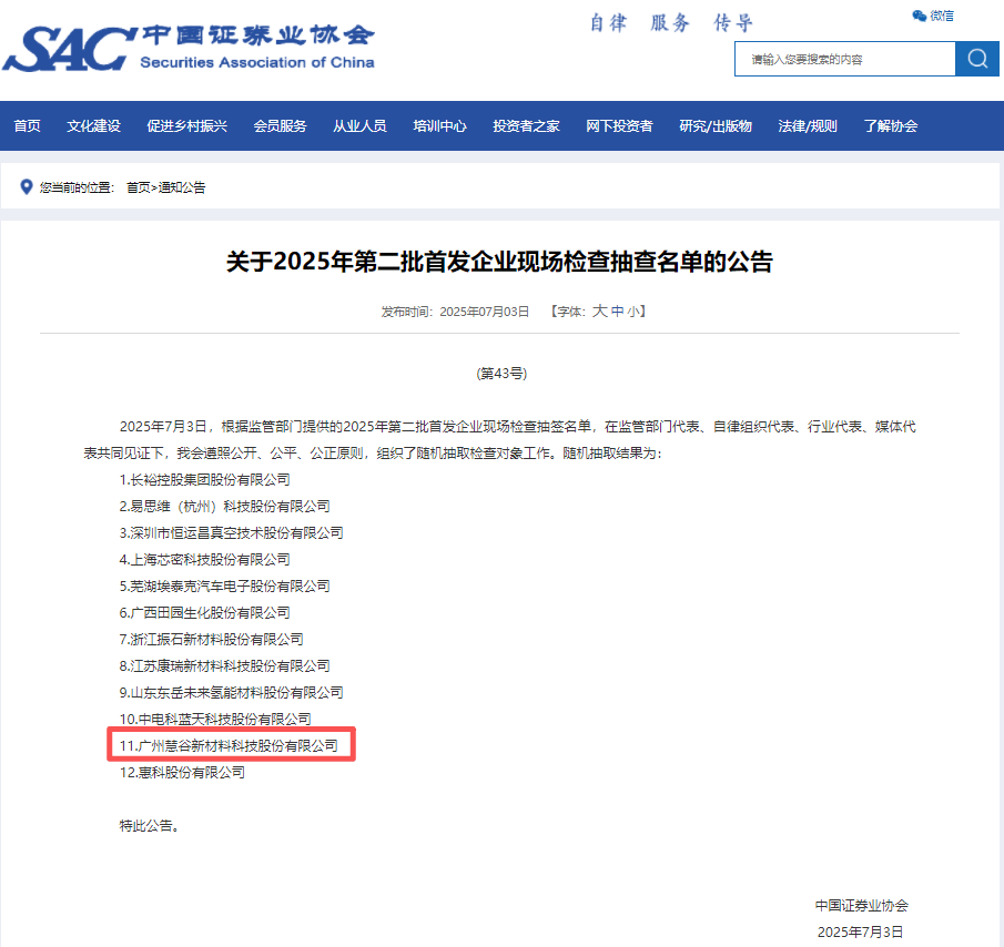 瞭望塔财经获悉,2025年6月28日,广州慧谷新材料科技股份有限公司(以下简称“慧谷新材”)创业板IPO申请获受理。仅5天后,该公司就被抽中现场检查。