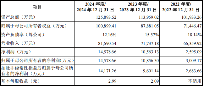 从表面数据看,慧谷新材的报告期内业绩表现亮眼。2022-2024年,公司营收从6.64亿元增长至8.17亿元,扣非归母净利润从2683.66万元飙升至1.42亿元,三年暴涨近四倍。
